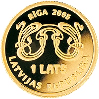 Obverse: Ornate decoration of Art Nouveau. Inscription - RĪGA 2005, 1 LATS & LATVIJAS REPUBLIKA.