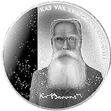 Reverse: A photo of Krisjanis Barons. Inscription - KAS