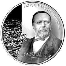 Reverse: A photo of Krisjanis Valdemars and the sea. Inscription -
