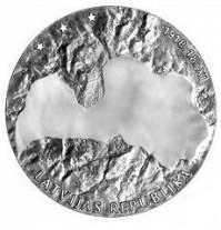 Obverse: Outline of a Latvian map. Inscription - 1918.18.XI & LATVIJAS REPUBLIKA.