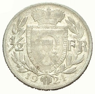 1/2 Frank. Silver coin. 1924.