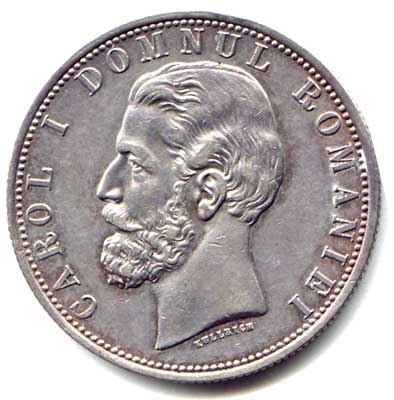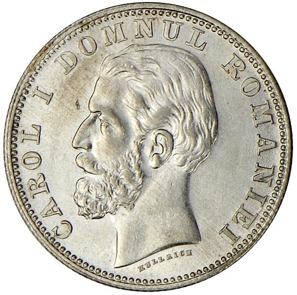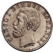 Obverse: Head of Carol I with inscription CAROL I DOMNUL ROMANIEI