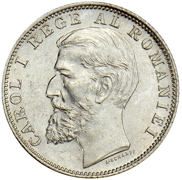 Obverse: Head of Carol I with inscription CAROL I REGE AL ROMANIEI.