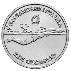 Obverse: Swimmer in 1996 Olympics.