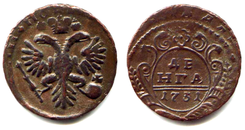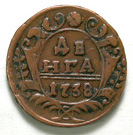 Copper 1/2 Kopek (Denga) of Anna. 1738.