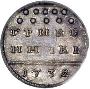 Silver Grivennik (10 kopeks) of Anna. 1731-35.