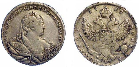 Silver Poltina (50 kopeks) of Anna. 1737-40.