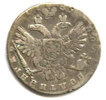 Silver Polupoltinnik (25 kopeks) of Anna. 1739-40.