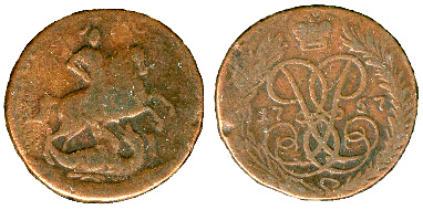 Copper 1 Denga of Elizabeth. 1757-60.