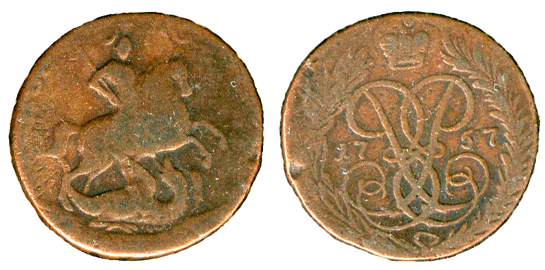 Copper 1 Kopek of Elizabeth. 1756-57.