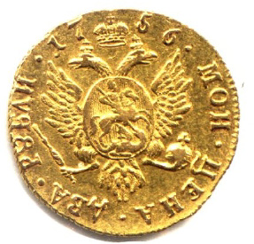 Gold Ruble of Elizabeth. 1756-58.