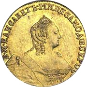 Gold 10 Rubles of Elizabeth. 1755-59.