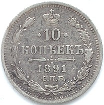 Silver 10 Kopeks. 1881 - 93.
