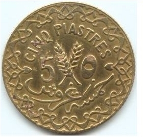 Aluminum-Bronze 5 Piastres. 1926-40.