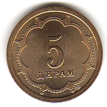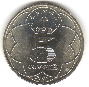 5 Somoni. Copper-Nickel-Zinc coin. K-9