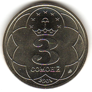 3 Somoni. Copper-Nickel-Zinc coin. K-8