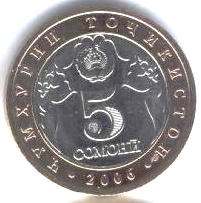 5 Somoni. Copper-Nickel coin. K-9