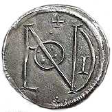 Reverse: Londonia monogram, pellets in O and trefoil below.