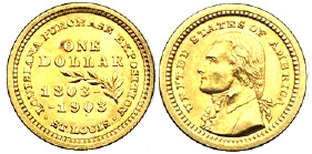 Reverse: One Dollar in words with Legend Louisiana Purchase Exposition.