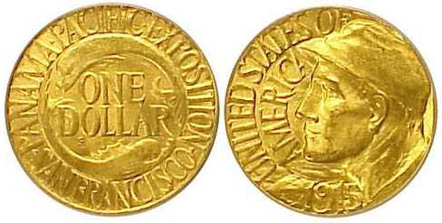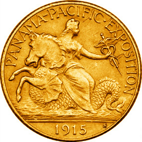 Gold 1 Dollar. 1915 CE. Panama Pacific Exposition.