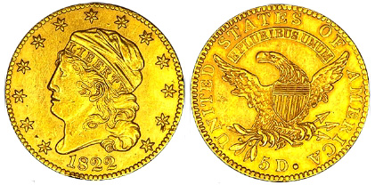 Gold 5 Dollars (Half Eagle) 1813-29.