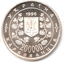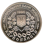 Reverse: Ukranian national symbol sorrounded by guelder-rose sprays