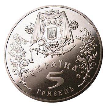 5 Hryvnia. Copper-Nickel-Zinc coin. K-