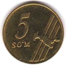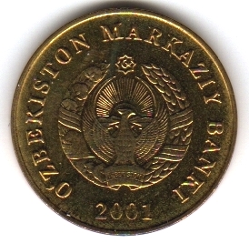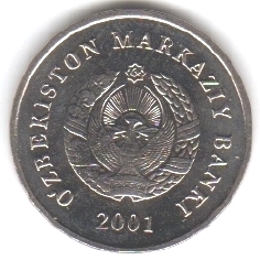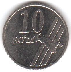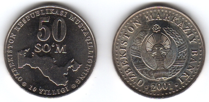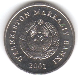 Reverse: Map of Uzbekistan and denomination in Arabic numeral and in