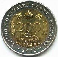 Brass center and Copper-Nickel ring 200 Franks. 2003-present.
