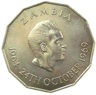Obverse: Head of Presidet Kaunda and legend - Zambia, 24 October 1964