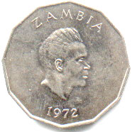Obverse: Head of Presidet Kaunda and legend - Zambia 1972.